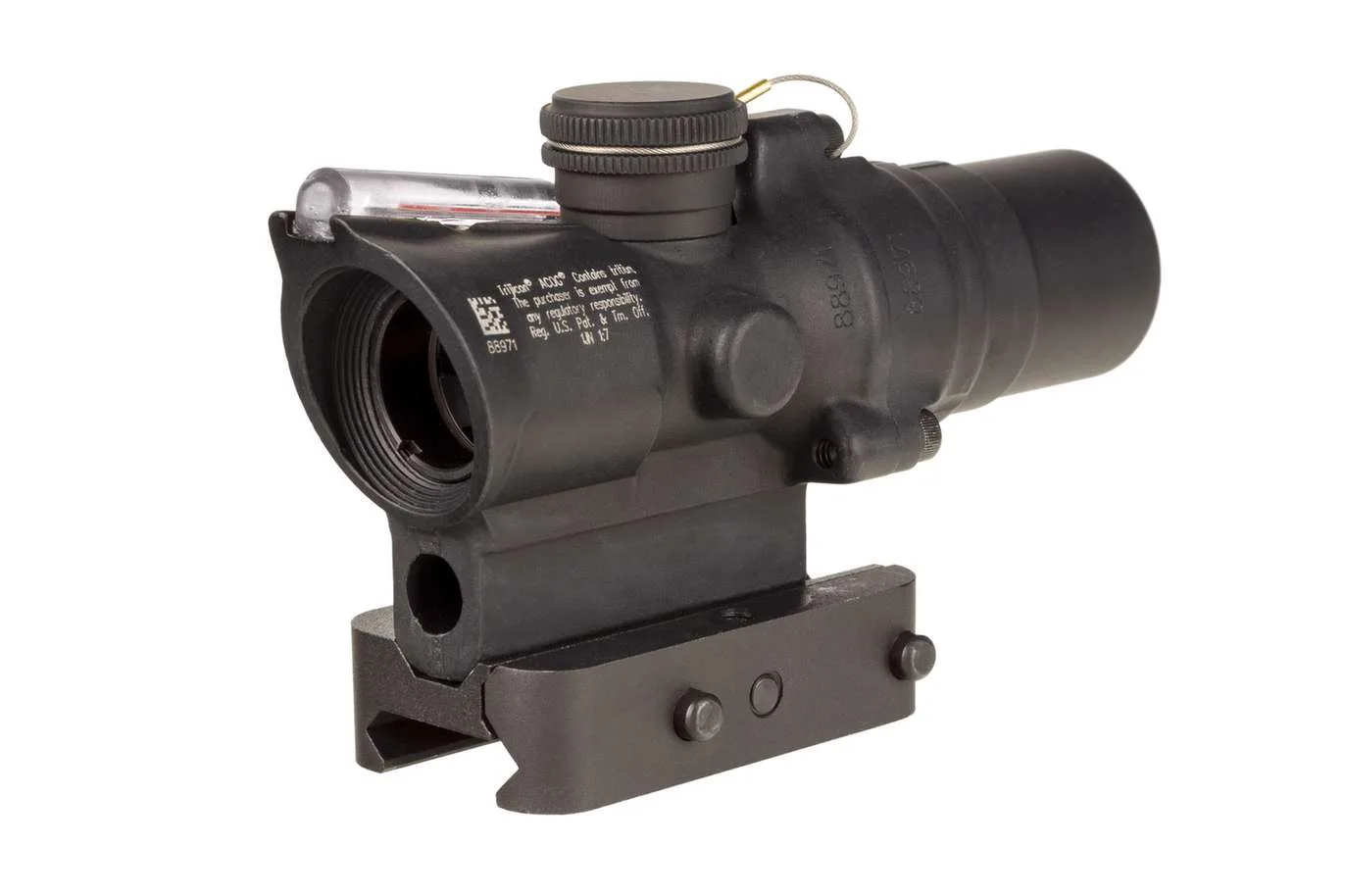 The Trijicon ACOG 1.5x16S Scope is a fixed magnification riflescope with an illuminated reticle pattern for use in any lighting conditions. Dual illumination provides two sources of battery-free illumination – fiber optics and tritium. The fiber optics use ambient light to automatically adjust the brightness level and contrast of the reticle to available light conditions. The tritium-phosphor lamp glows in low-light conditions. The ACOG body is designed to be extremely rugged and reliable. Wrapped in a smaller package, at 5.1 ounces (without mount), this ACOG is perfect for fast-moving tactical teams operating in close quarters or for speed-oriented competition venues. The forged 7075-T6 aircraft-grade aluminum alloy housing provides for a nearly indestructible sighting system. No other magnified optic has been used more in combat than the Trijicon ACOG. No tools are needed for windage and elevation adjustments because the ACOG features external adjusters. All adjuster caps are provided with a lanyard assembly to minimize the loss of caps. This model provides weapons like the M16/M4 with excellent fire control capability. Targets are easier and quicker to acquire through the 1.5×16 models because of the larger field of view (7.4 degrees) and eye-friendly design.