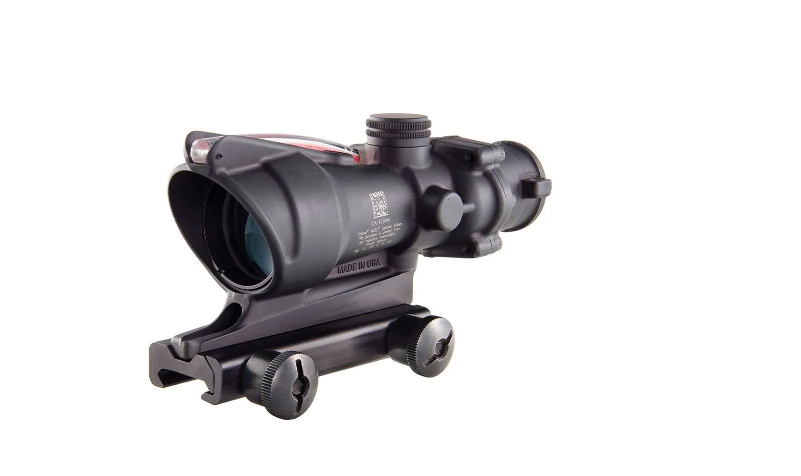 The 4×32 ACOG scope provides a dual-illuminated reticle using fiber optics and tritium for a bright aiming point in any light condition. The ranging reticle allows for bullet drop compensation out to 600 meters without any manual adjustments.