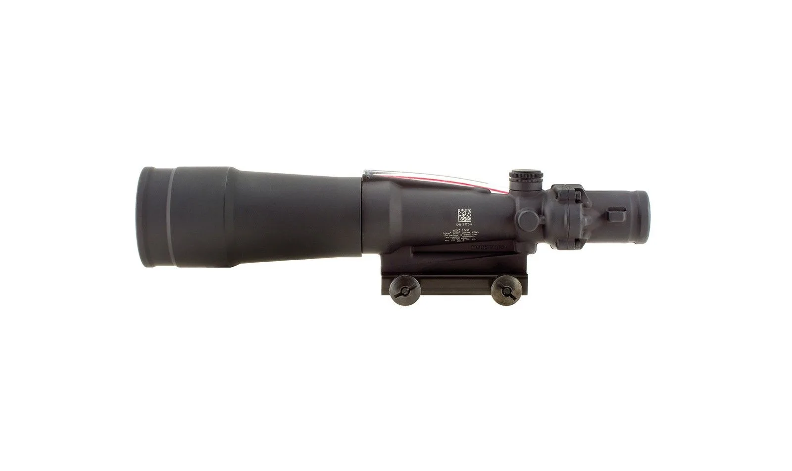 ACOG 5.5×50 Red Chevron BAC Flattop.223 Reticle includes flat top adapter. The chevron reticle is designed to be zeroed using the tip at 100 meters. The width of the chevron at the base is 5.53 MOA which is “19 at 300 meters. This allows range estimation for silhouette targets. See more Crossbow Scopes.